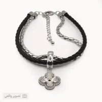 این دستبند ونکلیف دخترانه از مجموعه دستبند دخترانه و زنانه شیک، بر پایه تضادی هنرمندانه از متریال‌ها ساخته شده است:
